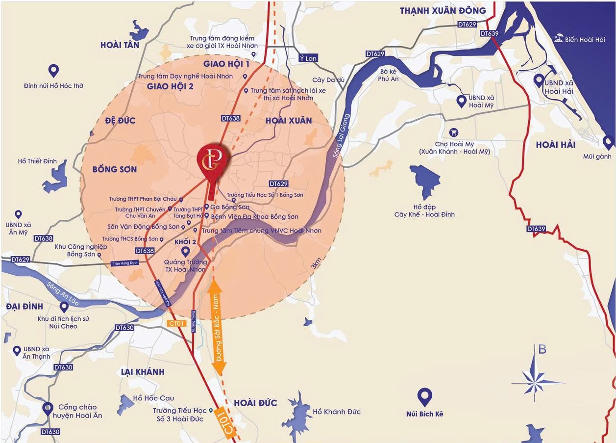 Dự án tọa lạc tại phường Hoài Nhơn Nam, nơi có hai công trình trọng điểm là đường sắt và đường bộ cao tốc Bắc - Nam. Theo quy hoạch, tại đây sẽ đặt nhà ga Bồng Sơn - một trong hai nhà ga đường sắt cao tốc Bắc - Nam đi qua Gia Lai, hứa hẹn biến khu vực này thành một trong những cửa ngõ kết nối xuyên suốt cả nước.